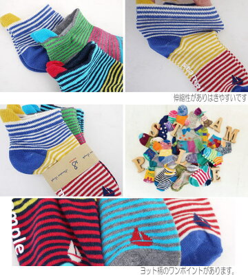 7/24再入荷♪●定番新作●キッズでも履きやすく脱げにくい『3P』マリーナアンクルソックス(10cm〜21cm)【Stample/スタンプル】子供の靴下/キッズ/ベビーの靴下/3足組/子供服